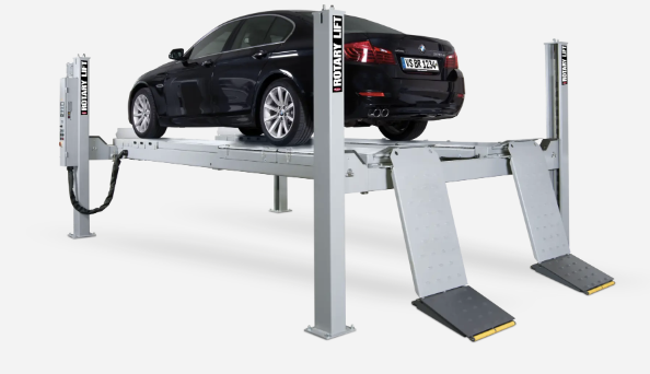 • Justerbara låsremsor i lyftpelarna gör det möjligt att justera lyften helt horisontellt – viktigt för exakt arbete när det används som hjuljusteringslyft. Exakt hjulinställning och hög grad av arbetsplatssäkerhet garanteras därmed.