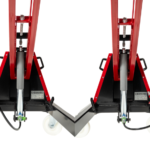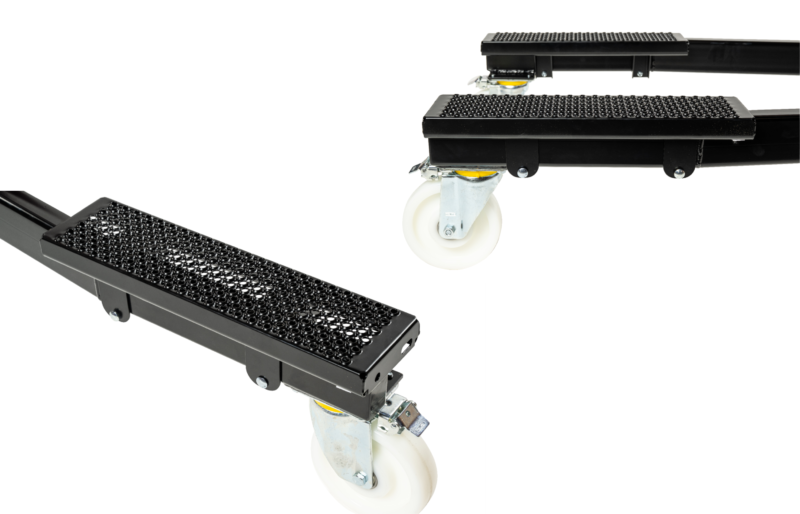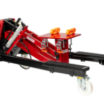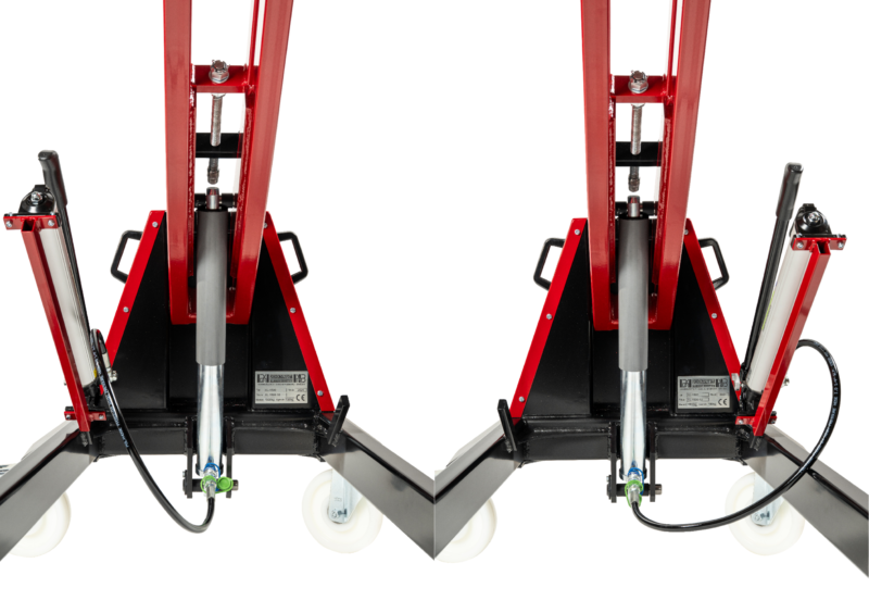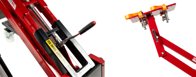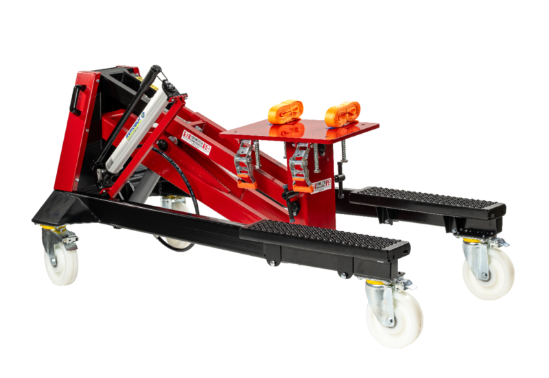 Svensktillverkad höglyftande aggregatlyft för demontering/montering av lastbils- och bussväxellådor, bakväxlar och andra tunga komponenter i bekväm arbetshöjd.